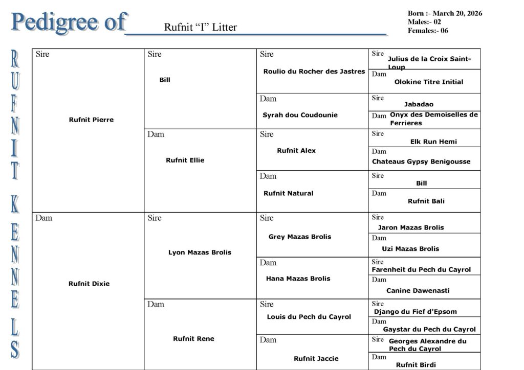 This is a repeat breeding of our Rufnit “F” Litter